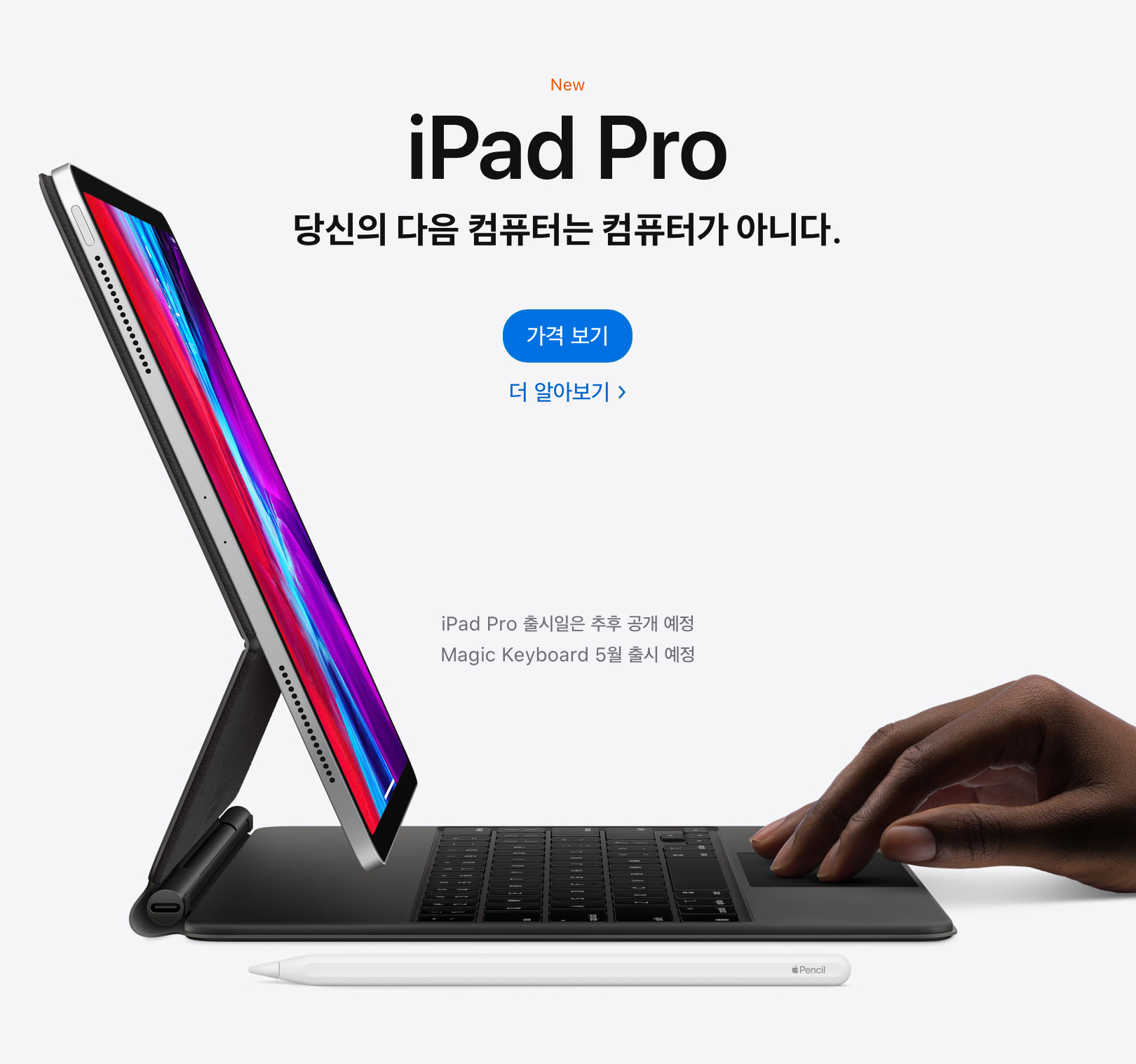 그리고 스마트 키보드 2세대입니다. 가위식 키보드로 바뀌었고 라이트가 들어오며 트랙패드도 추가되어서 사용성이 엄청 좋아졌습니다. 그리고 신기하게 위의 사진처럼 공중에 띄울 수 있다는게 가장 놀랍네요. 너무 갖고 싶어졌습니다.